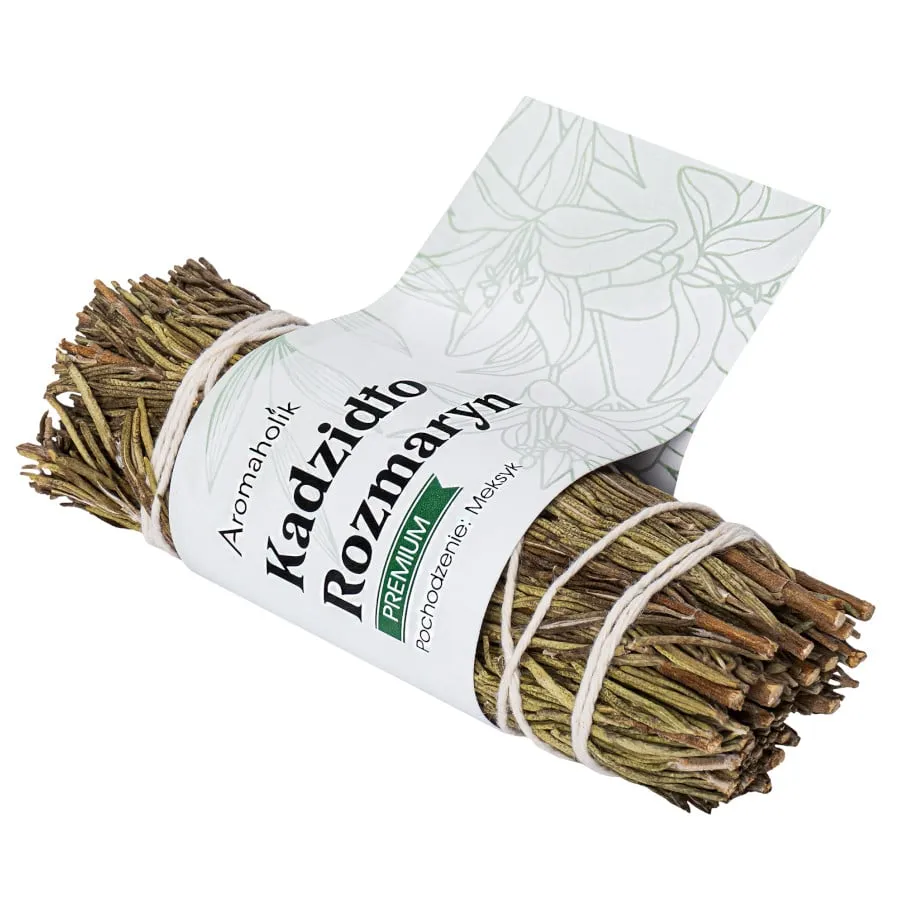 Rozmaryn to aromatyczne zioło lecznicze, cenione za intensywny zapach i liczne właściwości wspierające organizm. W aromaterapii znajduje szerokie zastosowanie dzięki naturalnej sile pobudzającej koncentrację i ułatwiającej wyciszenie umysłu. Kadzidło z rozmarynu zbliża do natury i sprzyja skupieniu. Suszone liście zawierają wysokie stężenie olejków eterycznych, które odpowiadają za jego aromaterapeutyczne działanie.