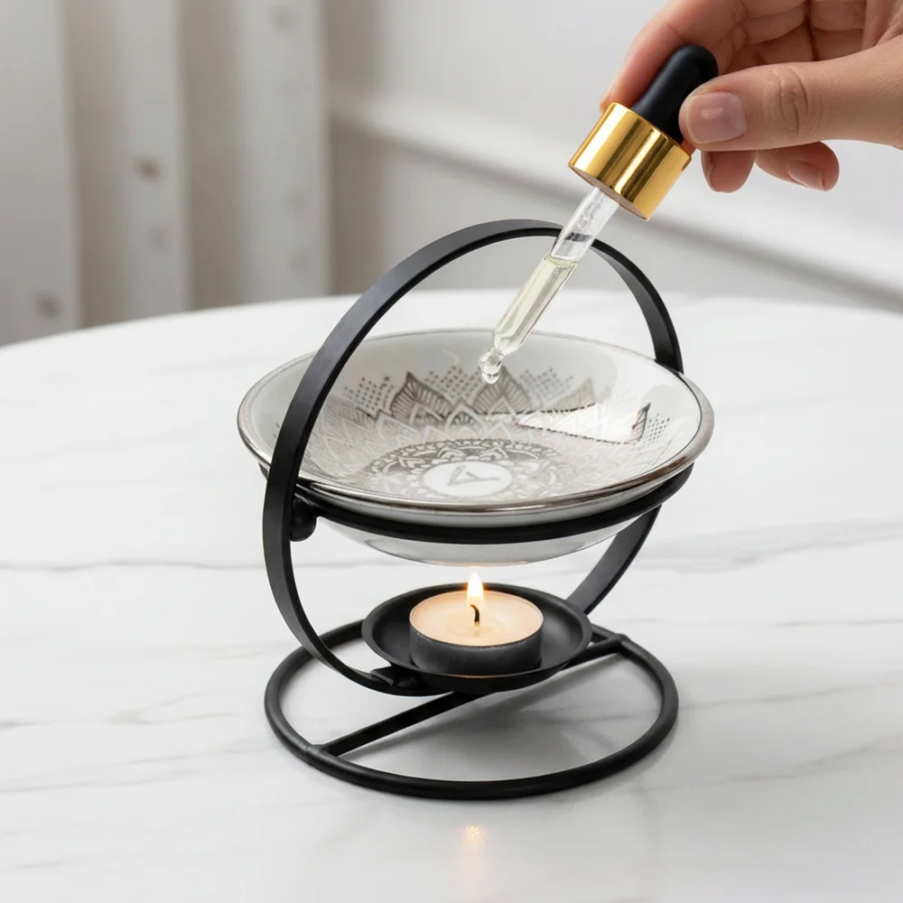 Umieść wodę z kilkoma kroplami naturalnego olejku Aromaholik lub wosk zapachowy w górnej części kominka. Ciepło uwolni aromat, tworząc wyjątkową atmosferę.