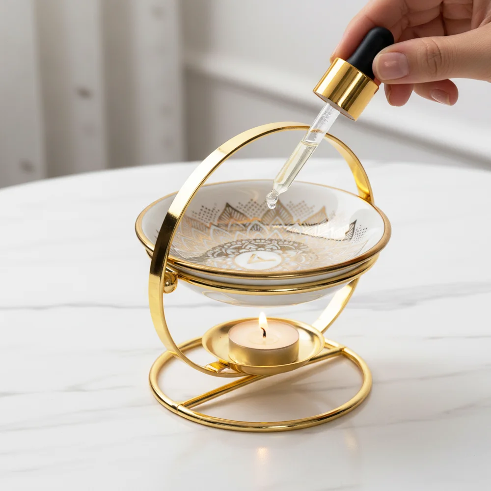 Kominek MEDITO jest idealny dla osób, które stawiają na wielofunkcyjność przedmiotów, które posiadają. Szeroki wachlarz możliwości jego wykorzystania oferuje nieograniczone doznania zapachowe. Uwadze nie uchodzi jego nowoczesny i oryginalny design, który doda wnętrzu element elegancji i uroku, dzięki malunkowi mandali buddyjskiej na talerzyku. Wysokiej jakości ceramika zapewnia radość z jego korzystania przez długie lata. Kominek MEDITO doskonale sprawdzi się jako dekoracja.