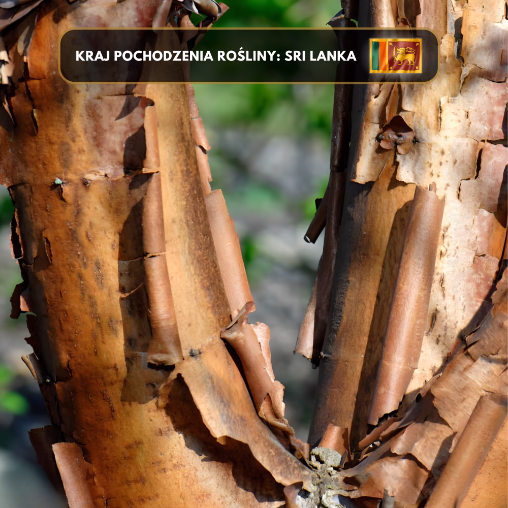 Olejek Cynamonowy pozyskiwany jest z kory drzewa Cinnamomum verum, znanego również jako cynamonowiec cejloński. Ta roślina egzotyczna może osiągać nawet do 10–15m wysokości. Pochodzi z obszarów o klimacie tropikalnym, głównie ze Sri Lanki oraz Indii, i wydziela charakterystyczny słodko-korzenny zapach. Charakteryzuje się gęstym, rozłożystym ulistnieniem, niepozornym kwiatostanem, a także drobnymi, osadzonymi na dnie kwiatowym owocami. Ceniony jest głównie ze względu na rzadkie zbiory kory, które odbywają się jedynie dwa razy w roku podczas pory deszczowej, kiedy jest najbardziej bogata w cenne olejki eteryczne – to właśnie wtedy Olejek Cynamonowy osiąga najwyższą jakość i intensywność działania.