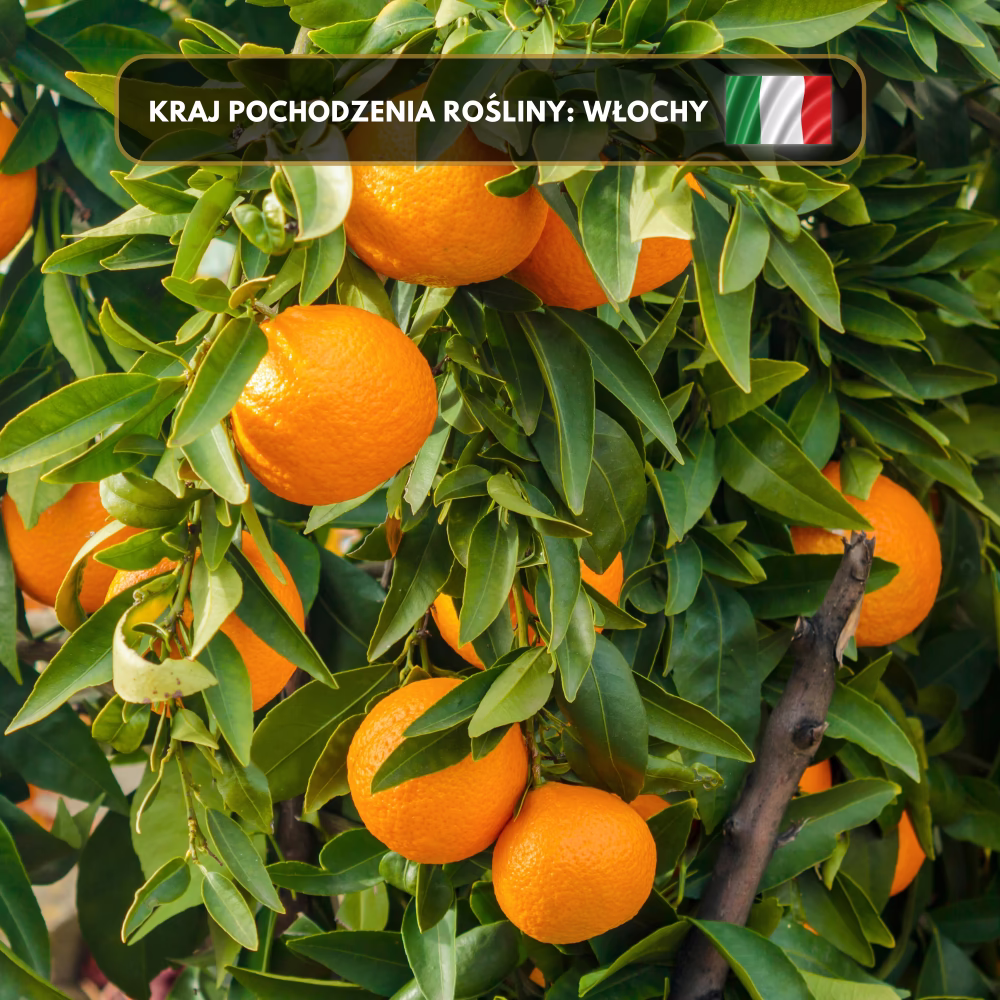 Olejek Pomarańczowy pozyskiwany jest ze skórek owoców Citrus sinensis – gatunku znanego jako pomarańcza chińska. Krwista pomarańcza to jej naturalna odmiana, wyróżniająca się miąższem o intensywnie czerwonym zabarwieniu. Roślina ta pochodzi pierwotnie z Chin, jednak obecnie uprawiana jest głównie w rejonie Morza Śródziemnego, szczególnie na Sycylii. Drzewo dorasta do 9–10 metrów wysokości, ma bujne, ciemnozielone liście i pachnące, białe kwiaty. Owoce o soczystym, czerwonym miąższu i pomarańczowej skórce są cenionym surowcem, z którego w sezonie zimowym pozyskuje się najwyższej jakości Olejek Pomarańczowy.