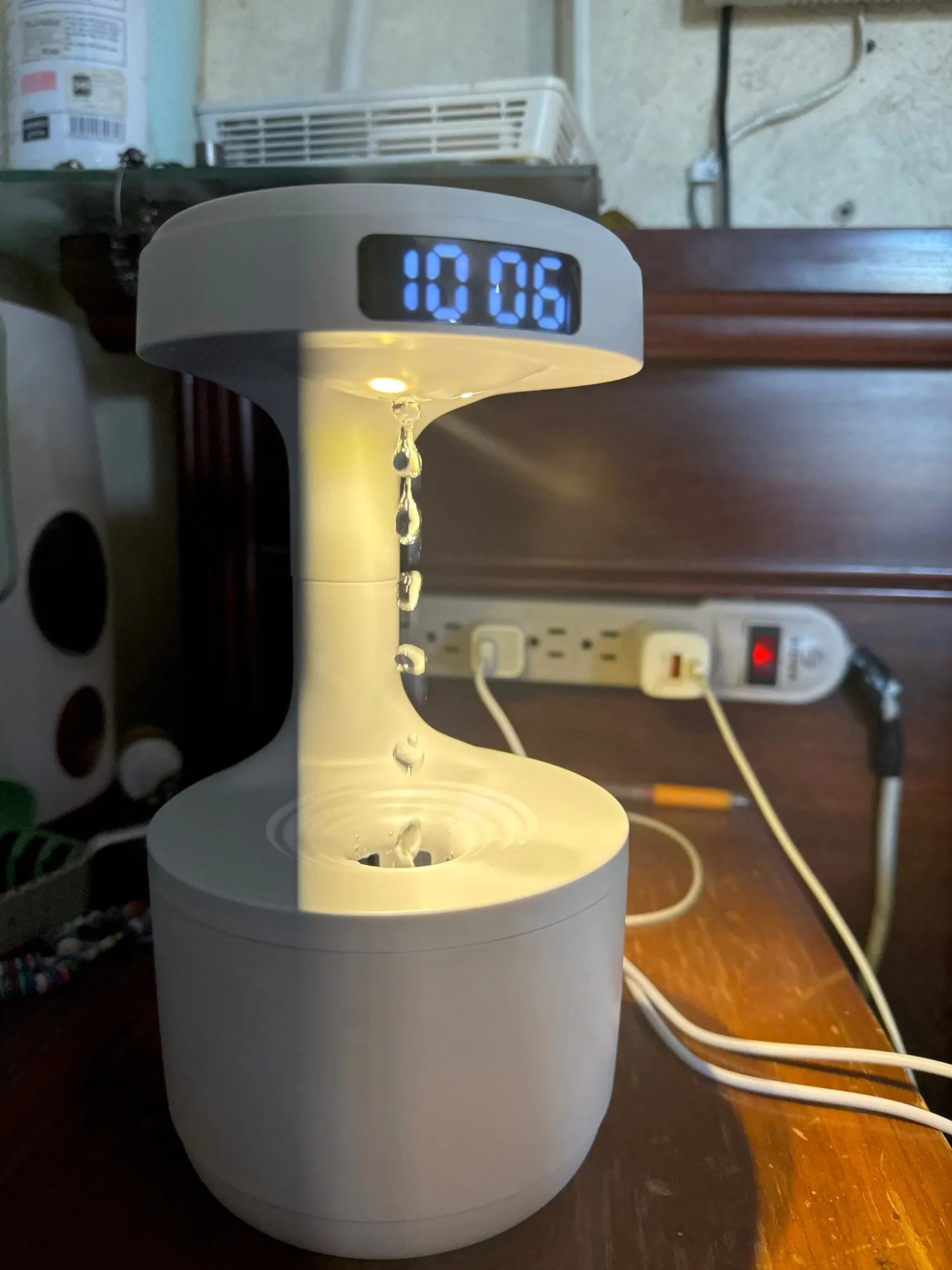 - Wbudowany Zegar – Nawilżacz posiada wyświetlacz LED z wbudowanym zegarem i podświetlenie, więc dobrze sprawdzi się jako lampka nocna.