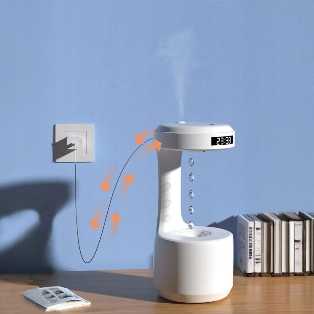 Efekt antygrawitacyjny w nawilżaczu powietrza zapewnia niezrównane rozprowadzanie wilgoci, tworząc uczucie lekkości i świeżości w każdym zakątku pomieszczenia