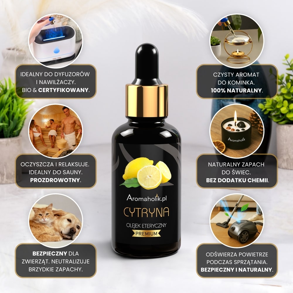 Olejek cytrynowy to prawdziwa eksplozja świeżości i naturalnej energii, która natychmiast poprawi Twój nastrój. Jego rześki, cytrusowy aromat działa stymulująco na umysł, rozjaśnia myśli i przegania poranną senność. W trakcie jego stosowania poczujesz przypływ chęci do działania i optymizmu, dlatego jest niezastąpiony w biurach, pracowniach oraz wszędzie tam, gdzie potrzebna jest jasność umysłu. Dodatkowo olejek ten posiada silne właściwości antyseptyczne – skutecznie oczyszcza powietrze z nieprzyjemnych zapachów i drobnoustrojów.