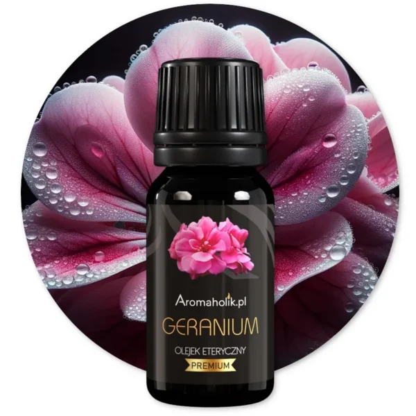 Olejek Geraniowy pozyskiwany jest z rośliny Pelargonium graveolens, znanej także jako pelargonia pachnąca, cenionej zarówno za swój dekoracyjny wygląd, jak i właściwości aromaterapeutyczne. Jej kwiaty przybierają różnorodne barwy, a liście – głęboko wcinane i intensywnie pachnące. Olejek Geraniowy uzyskuje się metodą destylacji parą wodną z kwiatów, a jego słodki, różany zapach znajduje szerokie zastosowanie w aromaterapii. Znany jest przede wszystkim ze swojego działania wyciszającego i harmonizującego – Olejek Geraniowy pomaga łagodzić napięcie nerwowe, lęk i stres, wspierając emocjonalną równowagę. To jeden z najbardziej cenionych olejków eterycznych o działaniu relaksującym i stabilizującym nastrój.