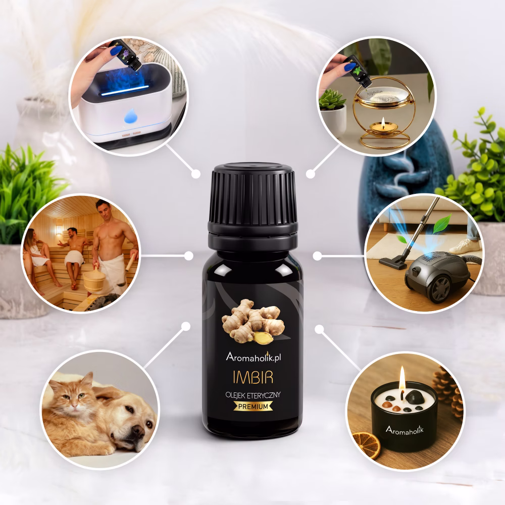 Olejek eteryczny z imbiru wyróżnia się ciepłym, korzennym, lekko cytrusowym aromatem, który rozgrzewa, pobudza i dodaje energii. Jego zapach wspiera motywację, poprawia nastrój i pomaga „ruszyć z miejsca”, dlatego świetnie sprawdzi się w chłodne dni, podczas pracy, treningu oraz wtedy, gdy potrzebujesz zastrzyku witalności. Olejek imbirowy jest ceniony za swoje właściwości tonizujące, odświeżające i wspierające komfort organizmu. Tradycyjnie wykorzystywany jest w aromaterapii do poprawy samopoczucia, redukcji uczucia zmęczenia oraz tworzenia przyjemnej, otulającej atmosfery.