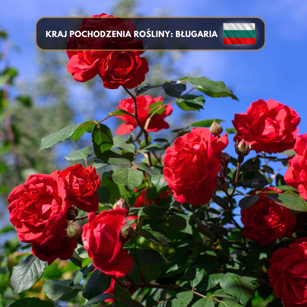 Olejek Różany to esencja pozyskiwana z delikatnych płatków Rose damascena, czyli róż damasceńskich, które kwitną w słonecznych dolinach Bułgarii, słynącej z najlepszej jakości róż na świecie. Róża ta jest uprawiana od wieków i ceniona za swoje niezwykłe właściwości aromaterapeutyczne. Olejek Różany charakteryzuje się bogatym, kwiatowym zapachem o głębokim aromacie, który przynosi uczucie luksusu i wyrafinowania. Jego wyjątkowy zapach działa kojąco na zmysły, redukując stres i napięcie, oraz wspomaga regenerację emocjonalną.