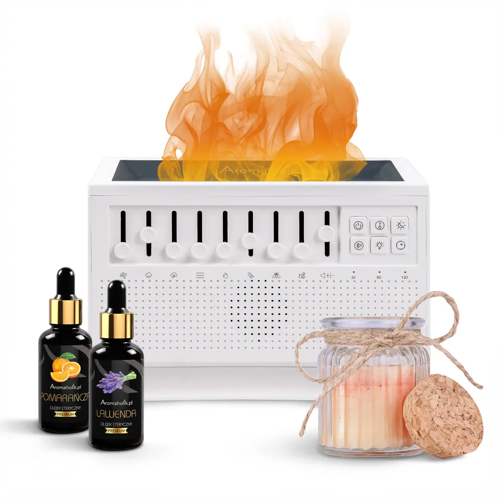 Klimat i Atmosfera Połączenie delikatnej mgiełki, blasku świecy i subtelnych dźwięków natury sprawia, że Twoje mieszkanie nabiera cech luksusowego SPA. Zestaw skutecznie neutralizuje nieprzyjemne zapachy, a jonizacja (częsta w nawilżaczach) dodatkowo odświeża powietrze, czyniąc je rześkim i lekkim.