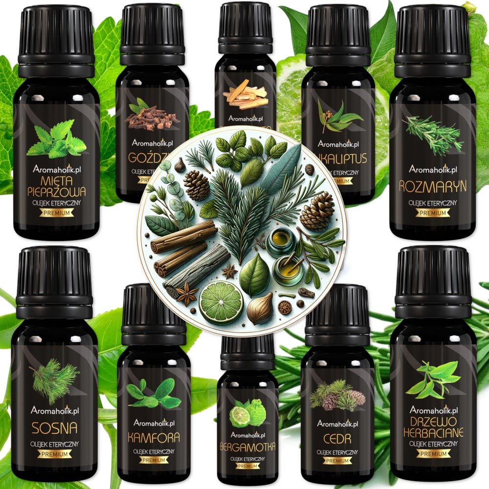 Zestaw Męski to wyjątkowa kolekcja 10 olejków eterycznych, które przeniosą Cię w świat męskich, wyrazistych aromatów. Olejek sosnowy przynosi ze sobą świeżość lasu, dodając energii i wigoru. Eukaliptusowy olejek działa orzeźwiająco i odświeżająco, idealny po intensywnym dniu. Miętowy olejek dodaje uczucie chłodzenia, podczas gdy rozmarynowy stymuluje i pobudza zmysły. Drzewo herbaciane jest znane ze swoich właściwości antybakteryjnych, a olejek z palo santo dodaje głębokości i spokoju. Goździkowy olejek wprowadza korzenny akcent, kamforowy działa kojąco, a cedrowy przynosi ciepło i stabilność. Bergamotka z kolei dodaje lekkości i cytrusowego akcentu. Ten zestaw to doskonała kombinacja dla każdego mężczyzny, który ceni sobie różnorodność i głębię.