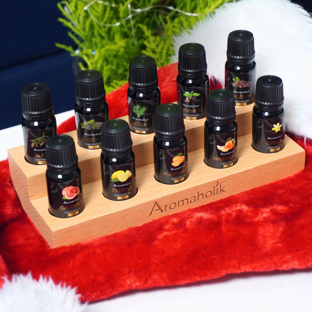Zestaw Odkrywcy składa się z 10 różnych zapachów, które pozwolą Tobie odkryć piękno olejków eterycznych. W skład zestawu wchodzą trzy zapachy kwiatowe – jaśminowy, lawendowy i ylang ylang – wprawią Cię w zachwyt swoją piękną, kwiatową wonią. Olejek pomarańczowy i z trawy cytrynowej pozwoli Ci poczuć słodką woń cytrusa, która od razu poprawi Ci nastrój. Prócz tego w zestawie znajdziesz olejek sosnowy oraz z drzewa herbacianego, które przyniesią ze sobą niesamowity aromat lasu. Olejek miętowy i eukaliptusowy charakteryzują się świeżym i przenikliwym zapachem orzeźwienia. Dodatkowo do zestawu dołączony jest olejek cynamonowy, tak by w pełni uzupełnić kompozycję zapachów.